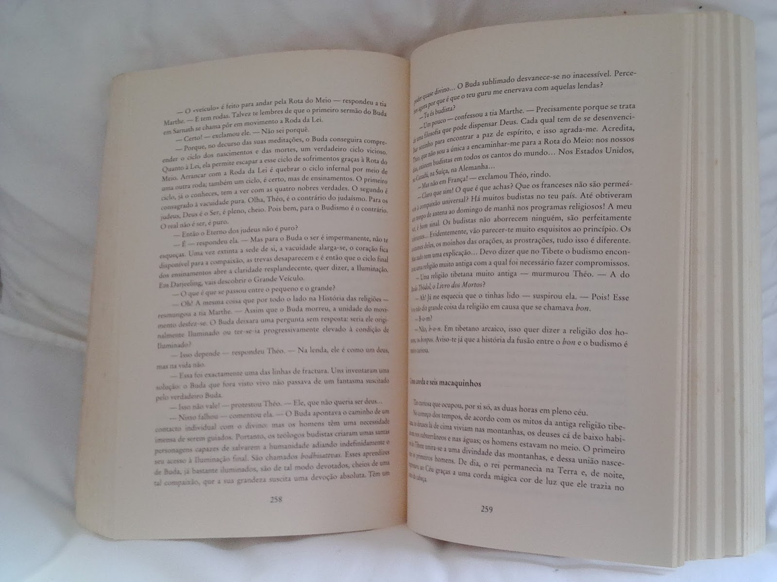 Nolivro A Viagem de Théo, constatei queas religiões têm muitas semelhanças entre si mas estão sempre em conflito. Nadade novo para mim, exceto desconhecer que existem muitas religiões e conceitosverdadeiramente estranhos. Além disso, por mim falo, acho que não conseguia fazera dança rodopiante dervixe: rodar erodar e rodar, ui… fico toda tonta;