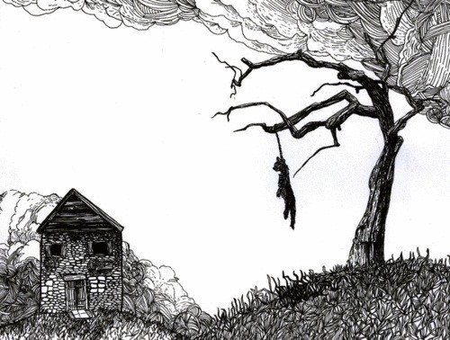 Uma noite, já muito bêbedo, vê um gato semelhante a Plutão e leva-o para casa. Só depois se apercebe que o gato tem uma mancha branca no pêlo em forma de forca.